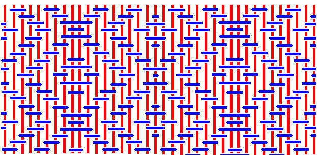 Beim Hersteller gibt es solche Gatterkämme mit drei Löchern, da muss ich noch mal nachfragen, wie die zu benutzen sind, um andere Muster zu erzeugen. Da sollen selbstgebastelte Litzen verwendet werden, um die Fäden aus den unteren Löcher hochzuziehen. Das kann man aber nur vor dem Kamm machen. Dann kann man diesen aber nicht mehr nach vorn zum Gewebe ziehen. Und dann gibt es welche mit versetzten Schlitzen wie auf dem Bild und welche mit durchgehenden. Mal sehen, was der Hersteller mir antwortet.